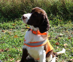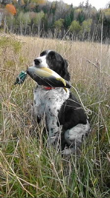 Although named after his father and a splitting image of Winchester, Kregor has a personality that is all his own. In the house he loves to play and is always ready to charm the laddies with his good looks and winning disposition. But, in the field he is at any given moment primed to flush a bird and loves to show off his talent for finding deer antler sheds! Whether at work or play there is no doubt that Kregor will give 100% effort into all he does.