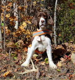 Meadow was picked from Autumn's first litter by our son Daniel. She is his best companion and friend. She is best described as our little princess. Like her mom she is feisty and full of energy. Meadow likes to be a leader and not a follower. She may not be very interested in flushing birds or retrieving ducks, but when it comes to looking good … Meadow knows how to strut her stuff! Her most favorite thing in the world (besides Daniel) is to go for a swim in the stream. We think she is 50% fish!